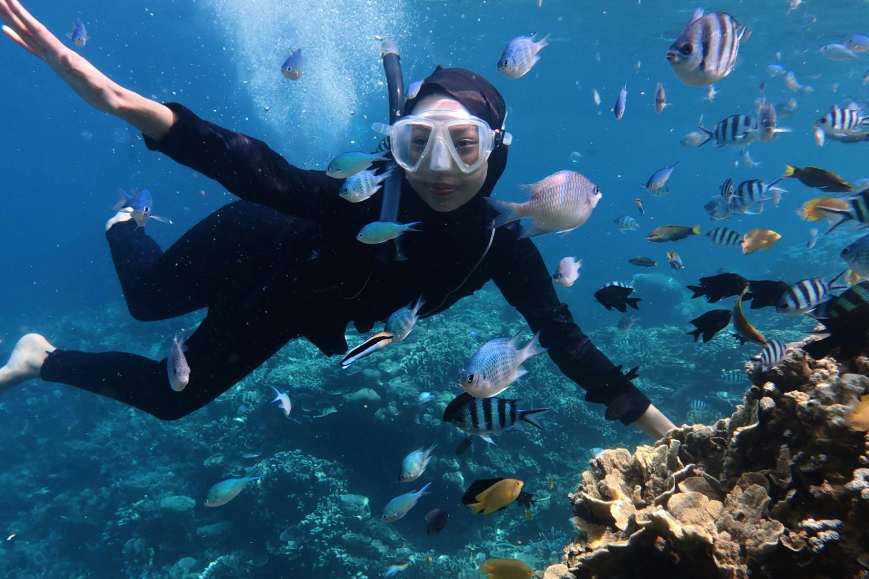 - The Underwater Journey (4 Snorkeling Spots) Manta Bay: A rare opportunity to swim and interact with the majestic Manta Rays in their natural habitat. Crystal Bay: Dive into calm, turquoise waters with incredible visibility and a pristine stretch of white sand. Gamat Bay: Explore a hidden gem filled with vibrant soft corals and schools of colorful tropical fish. Wall Bay: Experience a unique "drift" snorkel along a stunning underwater coral wall teeming with marine life.